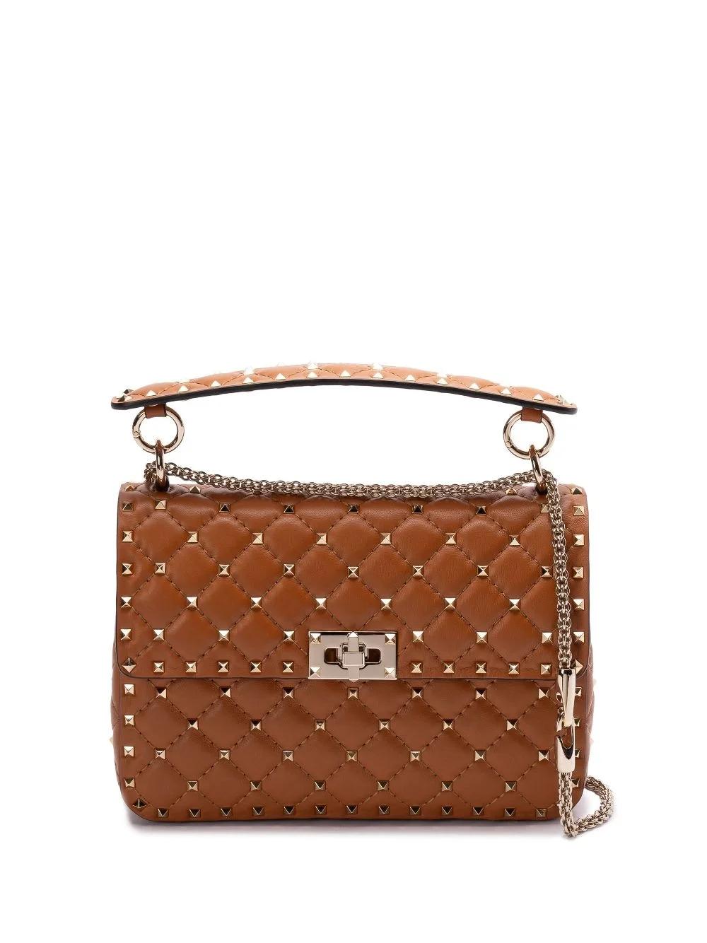 Rockstud Spike tote bag Highlights - Brown - Gold-tone rockstud embellishment - Twist-lock closure - Chain-link shoulder strap Made in Italy Composition Outer: Lambskin 100% SIZE & FIT Measurement DEPTH 2.36 in(6 cm) HEIGHT 6.29 in(16 cm) WIDTH 9.05 in(23 cm)