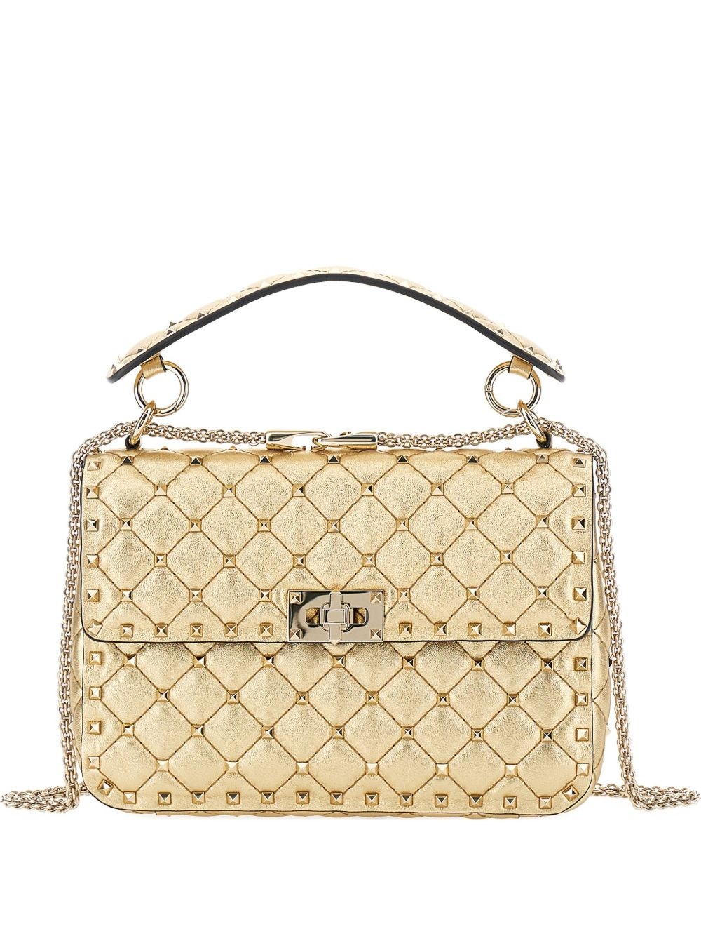 medium Rockstud Spike shoulder bag Highlights Made in Italy Composition Outer: Calf Leather 100% SIZE & FIT Measurement DEPTH 3.14 in(8 cm) HEIGHT 7.08 in(18 cm) WIDTH 9.44 in(24 cm)