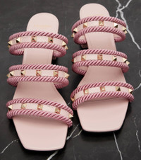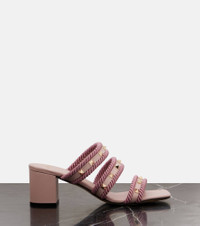 Crafted in Italy from leather, the Rockstud Torchon mules from Valentino Garavani are lined with leather. This design is finished with leather insoles and soles on square open-toe silhouettes. Product Details - Upper: leather, fabric - Lining: leather - Sole: leather insole and sole - Toe shape: square open toe - Made in Italy - Includes: dust bag, shoe box - Designer color name: Water Rose - Item color: pink - Hardware color: gold - Item number: P01062517 Size & Fit - True to size - European sizes - 6cm-2.5" heel (size EU 38)
