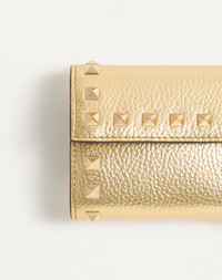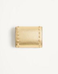 ROCKSTUD TRIFOLD WALLET IN LAMINATED GRAINY CALFSKIN