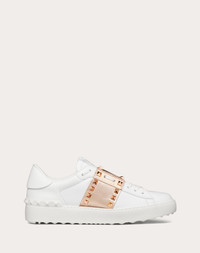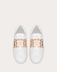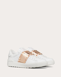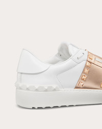 ROCKSTUD UNTITLED SNEAKER IN CALFSKIN LEATHER WITH METALLIC STRIPE