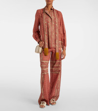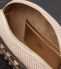 Valentino Garavani looked to ancient architecture to create the now-iconic Rockstud embellishments. The Rockstud shoulder bag boasts leather trims and is finished with the brand's iconic VLogo signature. Product Details - Material: cotton - Lining: suede - Made in Italy - Designer color name: Naturale-Tobacco/Mekong - Item color: pink, beige - Trim: calf leather - Hardware color: gold - Closure: zipped top - Chain shoulder strap - Internal details: single compartment, Card slots - Includes: dust bag, box - Item number: P01056422 Size & Fit - Height 12.5cm-5" - Width 19cm-7.5" - Depth 4.5cm-2" - Chain length 129cm-51"