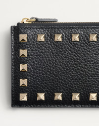 ROCKSTUD GRAINY CALFSKIN CARDHOLDER WITH ZIPPER