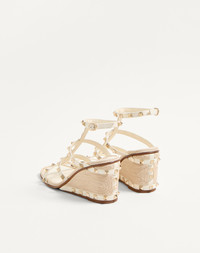 Valentino Garavani Rockstud wedge sandal with straps in calfskin with Cornely raffia-effect cotton embroidery - Platinum-finish studs - Adjustable ankle strap - Calfskin straps and trims - Embroidered wedge heel - Heel height: 80mm/3.2 in. with 10mm/0.5 in. platform - Made in Spain Product code: 6W0S0IJ8HJQ_098