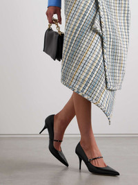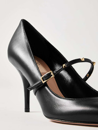 EDITORS'NOTES Valentino Garavani's Italian-made pumps incorporate the brand's 'Rockstud' embellishments in a minimal, elegant way. Modeled on traditional Mary Jane styles, they're crafted from soft leather and have sleek pointed toes. Adjust the buckled strap for a secure fit. SIZE & FIT - Fits true to size, take your normal size - Italian sizing DETAILS & CARE - Heel measures approximately 80mm/ 3 inches - Black leather (Goat) - Buckle-fastening strap