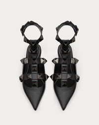 Valentino Garavani Roman Stud ballet flat in calfskin with straps embellished with maxi studs. - 18x18 mm/ 0.7 in. tone-on-tone maxi studs - Ankle strap with adjustable maxi buckle fastening - Heel height 5mm/0.25 in. - Made in Italy Product Code WS0BY5GWI_0NO