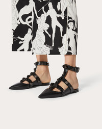 ROMAN STUD BALLET FLAT IN CALFSKIN LEATHER WITH TONAL STUDS