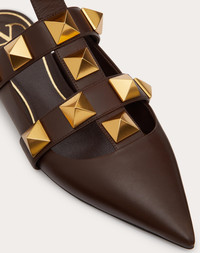 Valentino Garavani Roman Stud calfskin ballet flat with straps embellished with maxi studs. - 18x18 mm / 0.7x0.7 in. maxi studs with antique brass finish - Ankle strap with adjustable maxi buckle fastening - Heel height: 5 mm/0.25 in. - Made in Italy Product code: WS0BY5ZWM_KG8