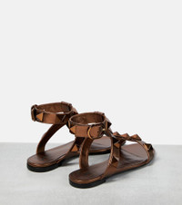 Turn to the Roman Stud sandals from Valentino Garavani for a statement warm-weather look. This bronze leather pair is elevated with buckled ankle straps and tonal pyramidal studs – a signature of the brand. Product Details - Lining: cow leather - Sole: leather insole and sole - Upper: lamb leather - Comes with dust bags, Comes with a box - Toe shape: square open toe - Designer color name: Bronzo - Closure: buckle-fastening ankle strap - Made in Italy - Item number: P00772018 Size & Fit - True to size - European sizes - 1,5cm-0.5" heel (size EU 38)
