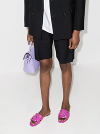 Roman Stud flat sandals Pretty in pink. These Roman Stud flat sandals from Valentino Garavani instantly add a quick spring to your step. A lot of people will wish they were in your shoes. Made in Italy Composition Sole: Calf Leather 100% Lining: Goat Skin 100%, Lamb Skin 100% Outer: Lamb Skin 100% SIZE & FIT Model measurements Height 5 ft 11 in(1.8 m) Bust/Chest 35.82 in(91 cm) Hips 37 in(94 cm) Waist 25.98 in(66 cm) Measurement HEEL 0.59 in(1.5 cm) Washing instructions Read Manufacturer Guidelines