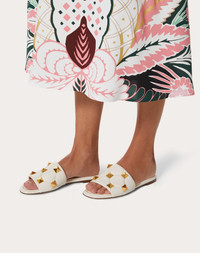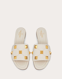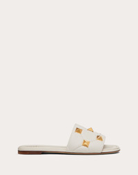 Valentino Garavani Roman Stud slide sandal in nappa. - Quilted construction and embellished with maxi studs. - Rhombus pattern outlined with tone-on-tone stitching - 15x15 mm / .6x.6 in. maxi studs with an antique-brass finish - Lightly padded footbed for added comfort - Heel height: 5 mm/ 0.25 in. - Made in Italy Product Code: WW2S0BK4ZCGI16_