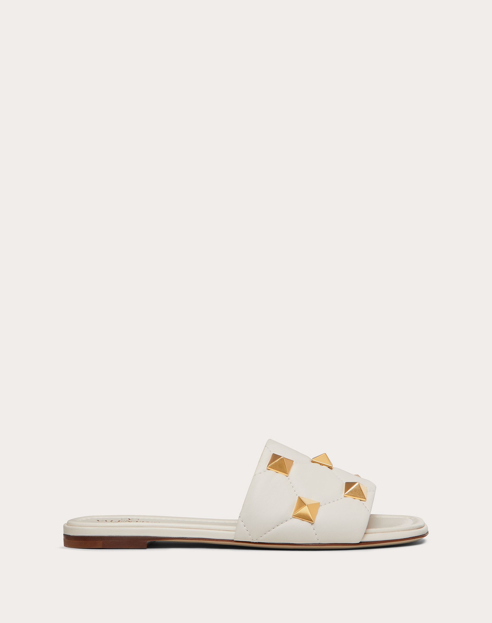 ROMAN STUD FLAT SLIDE SANDAL IN QUILTED NAPPA