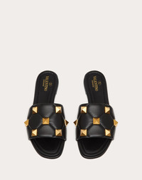 Valentino Garavani Roman Stud slide sandal in nappa. - Quilted construction and embellished with maxi studs. - Rhombus pattern outlined with tone-on-tone stitching - 15x15 mm / .6x.6 in. maxi studs with an antique-brass finish - Lightly padded footbed for added comfort - Heel height: 5 mm/ 0.25 in. - Made in Italy VW0S0BK4ZCG0NO