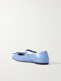 EDITORS'NOTES Valentino Garavani's flats marry Mary Jane and ballet styles. They're made from glossy patent-leather and have square toes topped with pretty bows and tiny monograms that match the gold-tone buckles. SIZE & FIT - Fits true to size, take your normal size - Italian sizing DETAILS & CARE - Heel measures approximately 25mm/ 1 inch - Light-blue patent-leather (Calf) - Buckle-fastening strap - Designer color: Popeline Blue