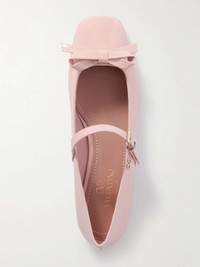 EDITORS'NOTES Valentino Garavani's flats marry Mary Jane and ballet styles. They're made from glossy patent-leather and have square toes topped with pretty bows and tiny monograms that match the gilded buckles. SIZE & FIT - Fits true to size, take your normal size - Italian sizing DETAILS & CARE - Light-pink patent-leather - Buckle-fastening strap - Designer color: Rose Quartz