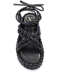 rope wedge sandals Don't your feet want to break free? Let your 'sole' breathe and feel the breeze in these gorgeous black leather rope wedge sandals from Valentino Garavani that have been crafted with an open toe. Nothing's better than being comfy in these. Featuring a branded insole, a back tie fastening, a woven effect and a flat sole. Made in Italy Composition Sole: Rubber 100% Outer: Lambskin 100% Lining: Bos Taurus 100% SIZE & FIT Measurement HEEL 1.96 in(5 cm) Sole height 1.77 in(4.5 cm)