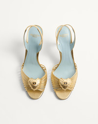 Valentino Garavani Sandal Royal in laminated nappa leather - Heart detail wrapped with leather mignon and VLogo Signature in antique-effect brass finish - Strap with elastic insert - Heel height: 85 mm / 3.3 in. - Made in Italy Product code: 7W2S0LU8RUR_I8M