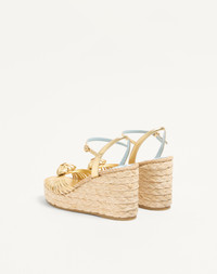 Valentino Garavani Sandal Royal wedge sandal in laminated nappa leather - Heart detail wrapped with leather mignon and VLogo Signature in antique-brass-effect finish - Adjustable strap - Rope base and rubber sole - Heel height 100 mm/4 in. with 30mm / 1.2 in. platform - Made in Italy Product code: 7W2S0MS1JBH_I8M