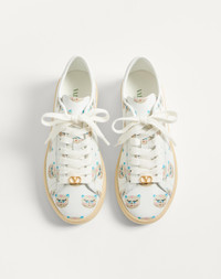 Valentino Garavani Royco trainer in soft nappa calfskin with Le Chat De La Maison pattern - Laces with removable VLogo Signature accessory in antique brass effect finish - Screen-printed VLogo Signature detail at the back - Rubber sole - Made in Italy Product code: 7W2S0LX9EAM_A7F