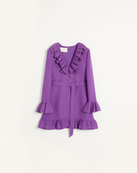Crepe Couture short dress - Ruffle detail - Waist belt - Rear zipper closure - Crepe Couture (65% Virgin Wool, 35% Silk) - Georgette Stretch lining (91% Viscose; 9% Elastane) - Length: 85 cm / 33.4 in. from the shoulders in an Italian size 40 - Sleeve length: 70 cm / 27.5 in. from the center back in an Italian size 40 - The model is 176 cm / 5'9" tall and wears an Italian size 40 - Made in Italy The look of the model is completed by a Valentino Garavani Vain Bag and Valentino Garavani Bowow Shoes. Product code: 6B3VAES61CF_R1B