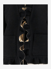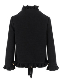 ruffle jacket Highlights - Black - Wool-blend - Ruffle details - Front closure - Long sleeves - Patch pockets Made in Italy Composition Virgin Wool 90%, Polyamide 10% Washing instructions Read Manufacturer Guidelines