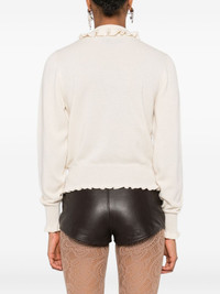 ruffled-collar cashmere polo top Highlights - Beige - Ruffled collar - Short button fastening - Long sleeves - Ruffled cuffs - Cashmere Made in Italy Composition Cashmere 100% SIZE & FIT Model measurements Height 5 ft 10 in(1.77 m) Bust/Chest 33.07 in(84 cm) Hips 37 in(94 cm) Waist 24.8 in(63 cm) Washing instructions Hand Wash