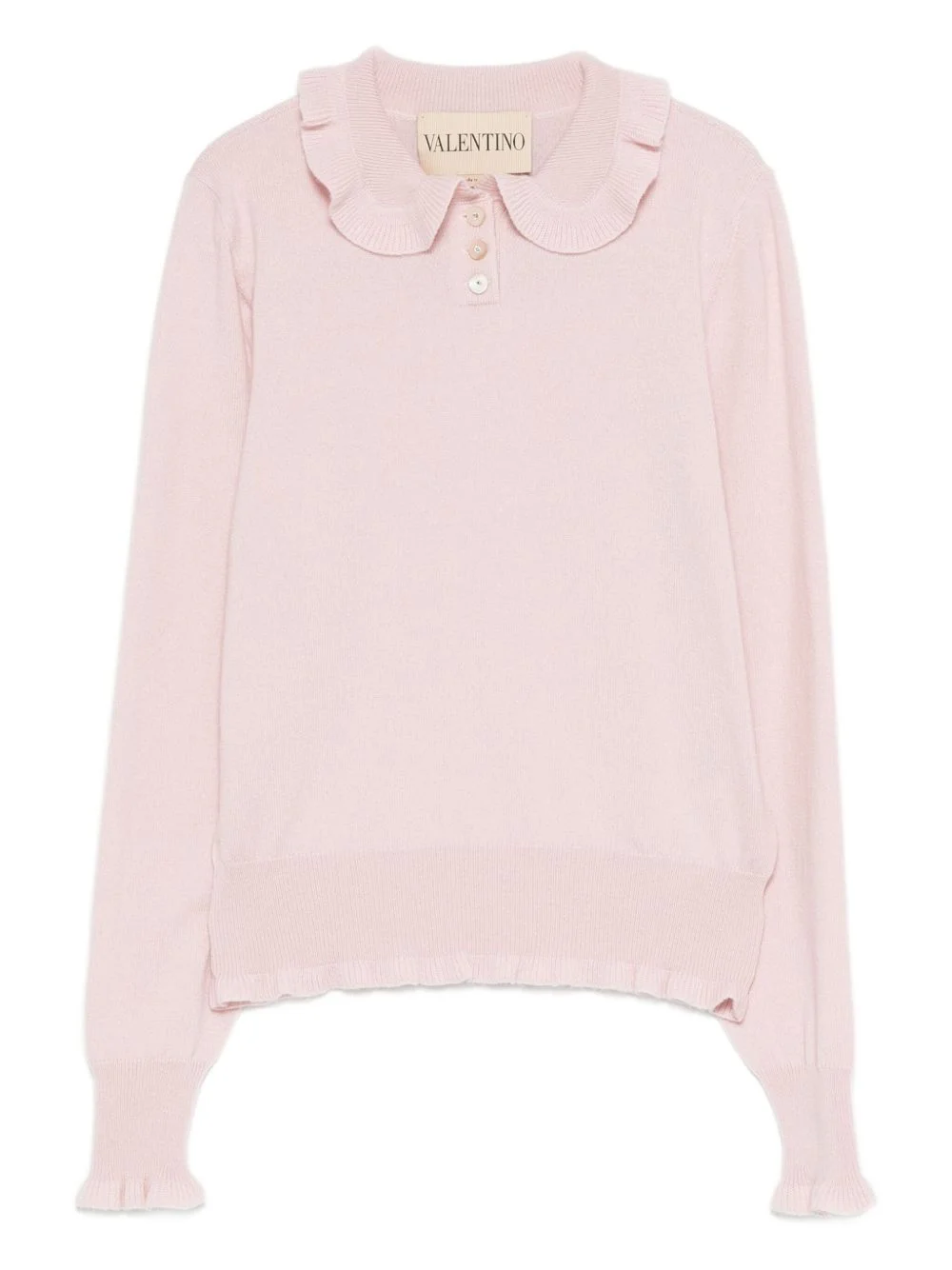 ruffled collar sweater Highlights - Pink - Ruffled collar - Button fastening - Long sleeves - Ruffled cuffs - Ribbed hem Made in Italy Composition Fabric 100% SIZE & FIT Model measurements Height 5 ft 9 in(1.75 m) Bust/Chest 34.64 in(88 cm) Hips 36.61 in(93 cm) Waist 26.37 in(67 cm) Washing instructions Read Manufacturer Guidelines