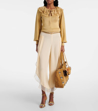 Product Details - Material: 81% viscose, 19% metallic fibres - Care instructions: dry clean - Made in Italy - Designer color name: Gold/ Vintage Gold - Item color: gold - Material II: 70% viscose, 16% metallic fibres, 12% polyamide, 2% elastane - Self-tie neck - Item number: P01026751