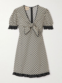 Bow-detailed ruffled polka-dot cotton-poplin mini dress Black