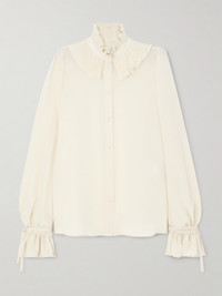 For Valentino Garavani's Spring '25 collection, Alessandro Michele looked to the label's archives - specifically the '60s and '70s, as evident in this fluttery shirt. It's made from silk crepe de chine and has a pleated ruffled neck and ties threaded through the cuffs. Take cues from the runway and wear yours tucked into a skirt, finishing the look off with the brand's corded lace tights.