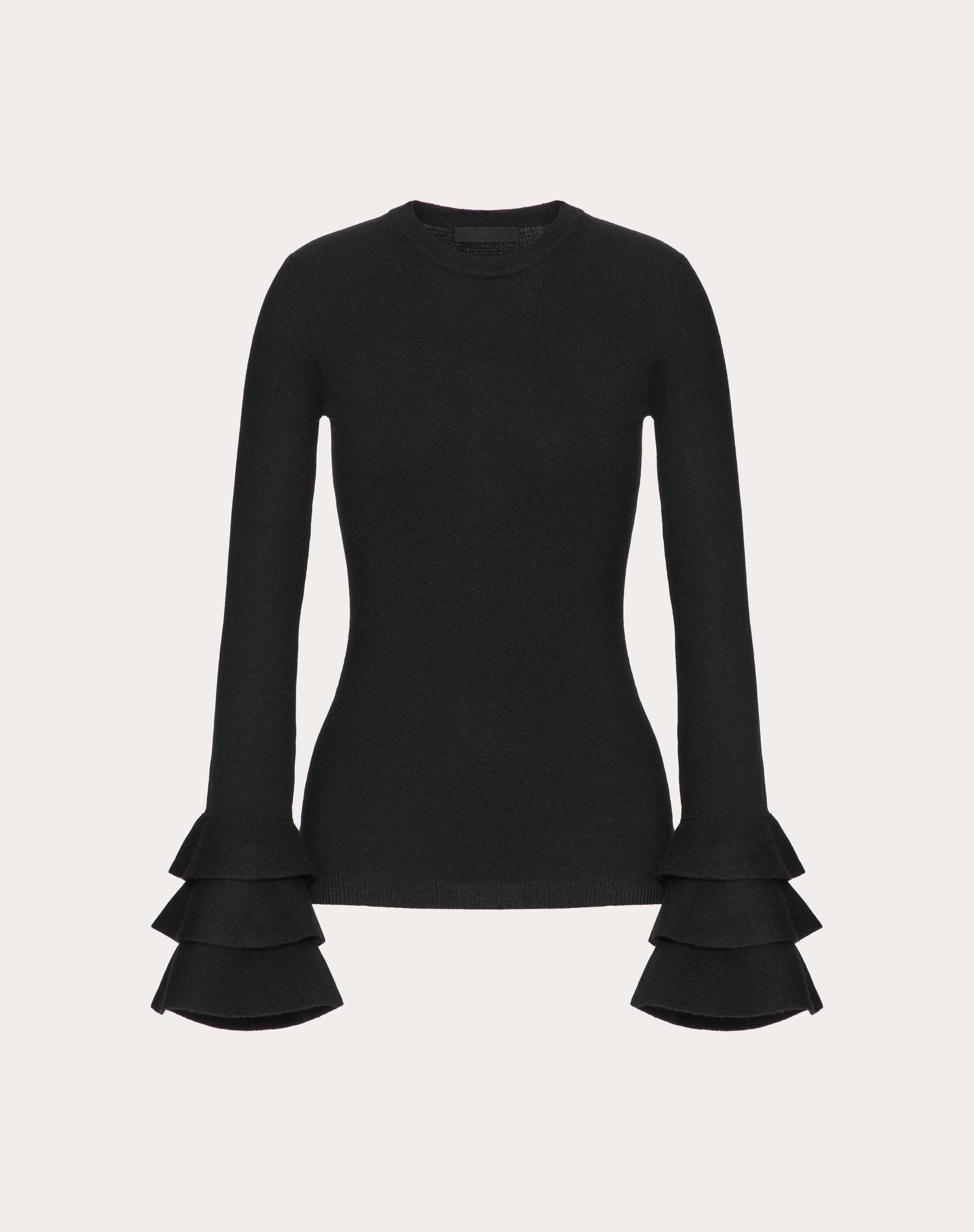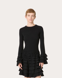 Viscose and wool sweater - Ruffle detail on cuffs - Viscose and wool (83% Viscose, 16% Wool, 1% Polyamide) - Length: 65 cm / 25.6 in. from the shoulders in an Italian size S - Sleeve length: 81 cm / 31.9 in. from the center back in an Italian size S - The model is 176 cm / 5'9" tall and wears an Italian size S - Made in Italy The look of the model is completed by Valentino Garavani Shoes. Product code: 5B0KC60M8VS_0NO