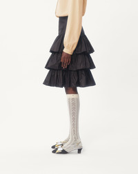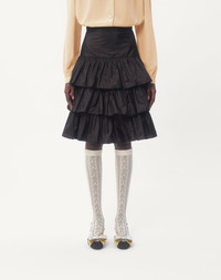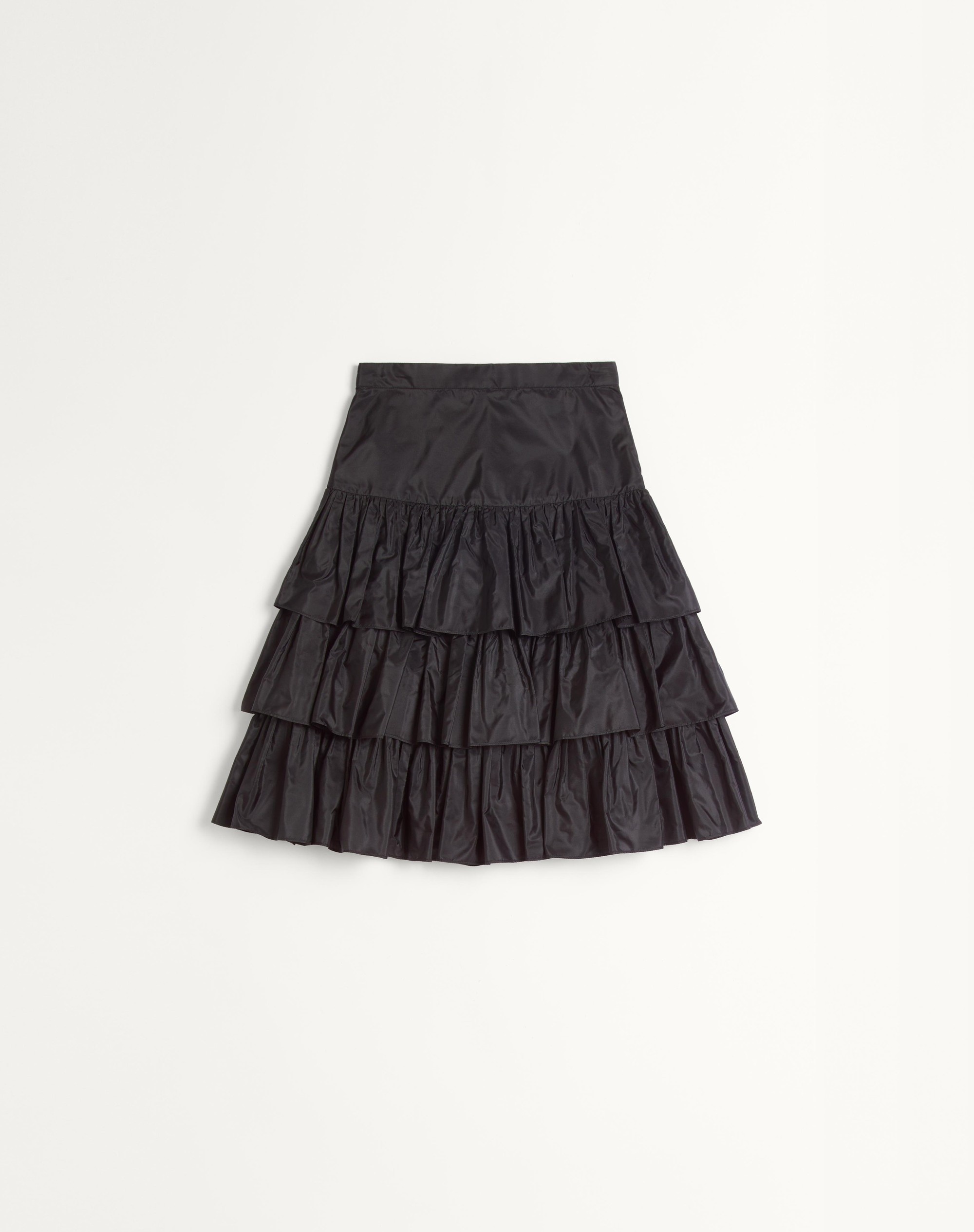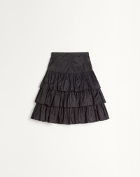 Taffetas ruffle skirt - Concealed side zipper fastening - Taffetas (100% Silk) - Habotai lining (100% Silk) - Length: 100 cm / 39.4 in. from the waist in an Italian size 40 - The model is 176 cm / 5'9" tall and wears an Italian size 40 - Made in Italy The look of the model is completed by a Valentino Garavani Viva Superstar Bag and Valentino Garavani Bowow Shoes. Product code: 6B3RACH1917_0NO
