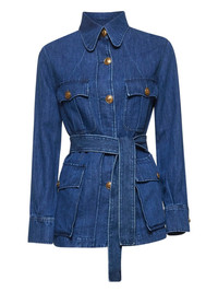 Sahariana denim jacket Highlights - Indigo blue - Front button fastening - Four front flap pockets - Buttoned-cuff sleeves - Belted waist Imported Composition Cotton 100%