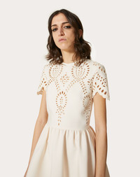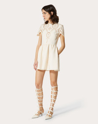 Valentino San Gallo Edition short dress in Crepe Couture. - San Gallo design - Pockets - Concealed rear zipper and hook-and-eye fastening - Crepe Couture (65% Virgin Wool, 35% Silk) - Stretch georgette lining (91% Viscose, 9% Elastane) - Length from shoulders: 87 cm / 34.3 in. for Italian size 40 - The model is 176 cm / 5’9” tall and wears an Italian size 40 - Made in Italy Product Code: WB3VAWF06GRA03