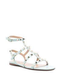 Rockstud flat sandals Highlights - Light blue - Buckle-fastening ankle strap - Branded leather insole - Leather sole - Caged design Made in Italy Composition Outer: Calf Leather 100% Lining: Calf Leather 100% Sole: Calf Leather 100%