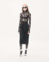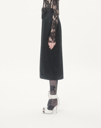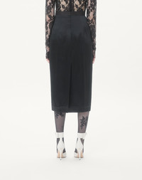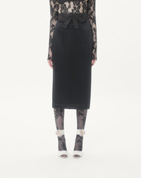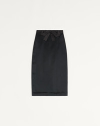Satin skirt with taffeta bow - Crinkle-effect finish - Unfinished hem - Rear zipper and hook-and-eye closure - Satin (100% Acetate) - Habotai lining (100% Silk) - Length: 120 cm / 47.2 in. from the waist in an Italian size 40 - The model is 176 cm / 5'9" tall and wears an Italian size 40 - Made in Italy The look of the model is completed by Valentino Garavani Drip Rose Shoes. Product code: 7B0RAEC592G_0NO