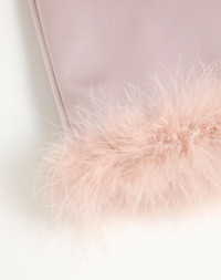 Satin skirt with feather boa at the hem - Back slit - Rear zip and hook-and-eye closure - Satin (100% Acetate) - Habotai lining (100% Silk) - Length 67 cm / 26.4 in. from the waist for an Italian size 40 - The model is 176 cm / 5'9" tall and wears an Italian size 40 - Made in Italy Product code: 8B3RAEJ392G_MM5