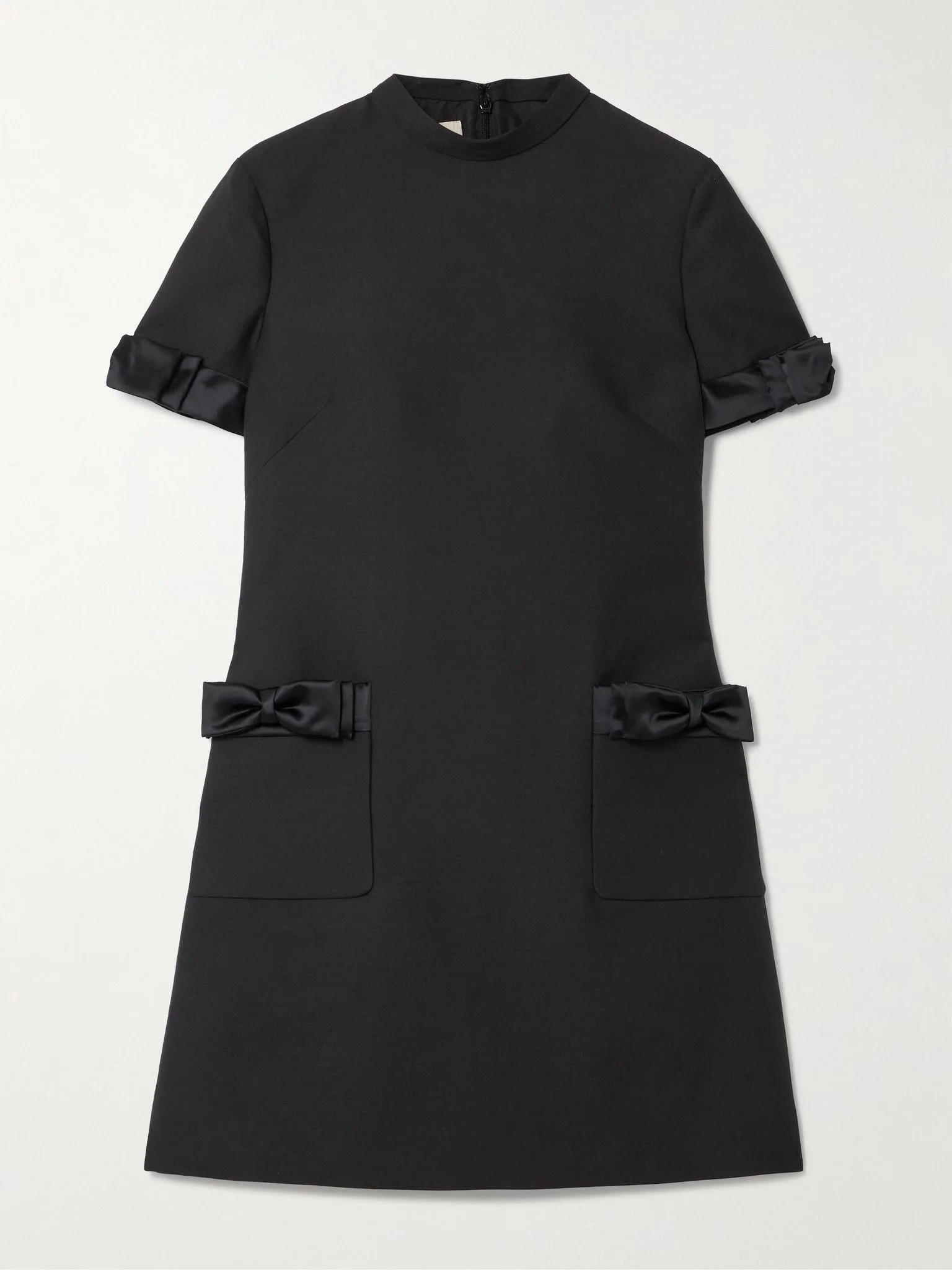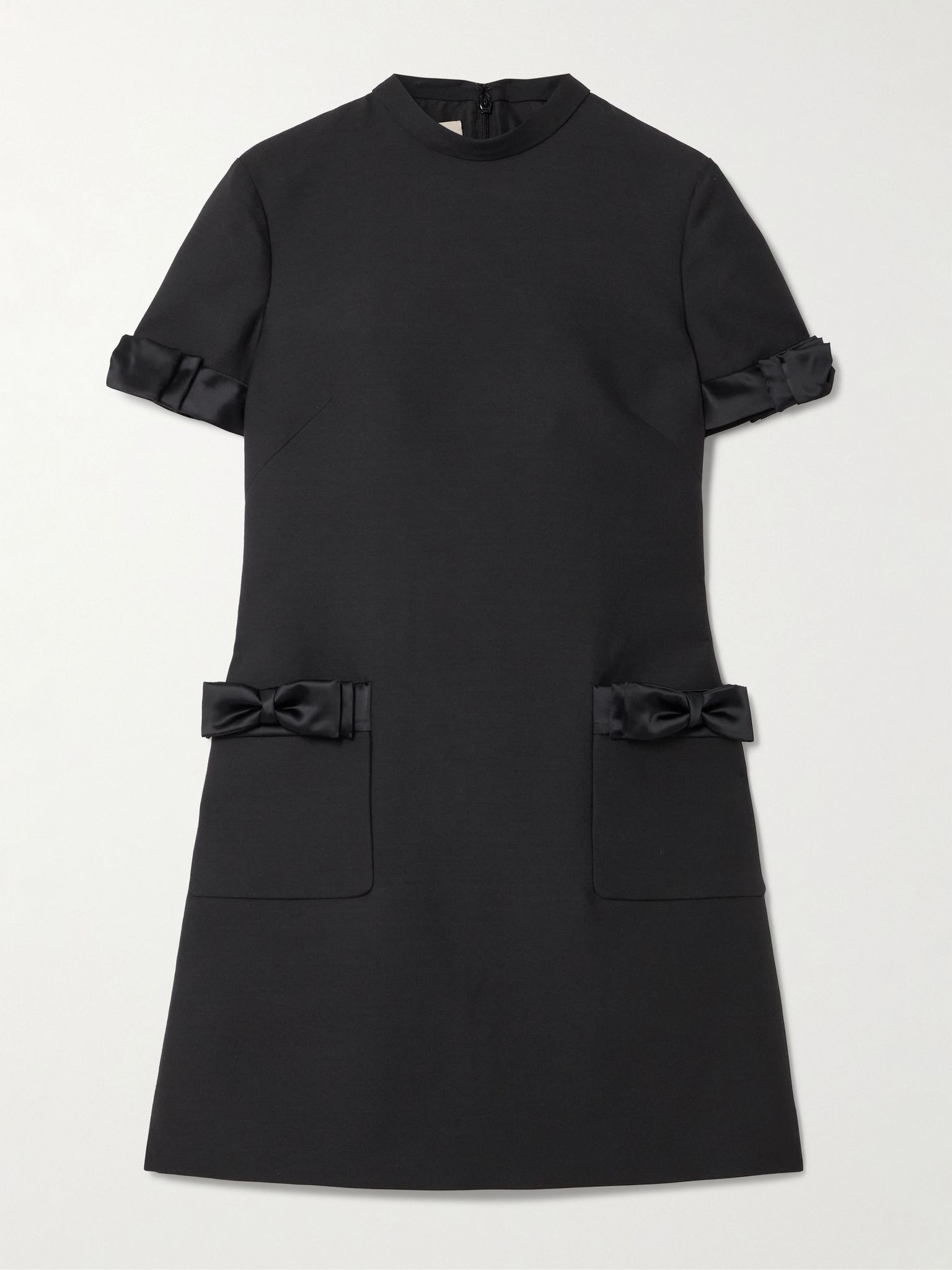 Valentino Garavani's mini dress is reminiscent of chic styles from the '60s. Cut from smooth wool and silk-blend, it's fully lined and has satin bows adorning the cuffs and pockets. Match the mood with platform sandals. Size & Fit - Fits true to size, take your normal size - Designed for a slightly loose fit - Mid-weight, non-stretchy fabric - Model is 180cm/ 5'11" and is wearing an IT 40 Model measurements: - Bust: 80cm/ 31.5" - Waist: 65cm/ 25.5" - Hip: 89cm/ 35" Details & Care - Black wool and silk-blend and satin - Concealed hook and zip fastening at back - 65% virgin wool, 35% silk; trim: 100% acetate; lining: 100% silk - Fully lined - Dry clean