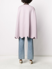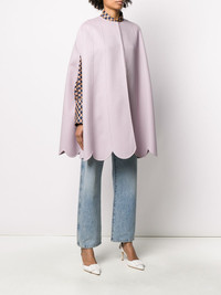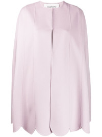 scalloped hem cape Cover yourself in style with this pink wool-blend scalloped hem cape from Valentino. Simple versatile and super easy to match with pretty much every style. An essential piece to any modern women. Featuring a round neck, a concealed front fastening, arm slits and a scalloped hem. Made in Italy Composition Virgin Wool 95%, Cashmere 5% Washing instructions Read Manufacturer Guidelines