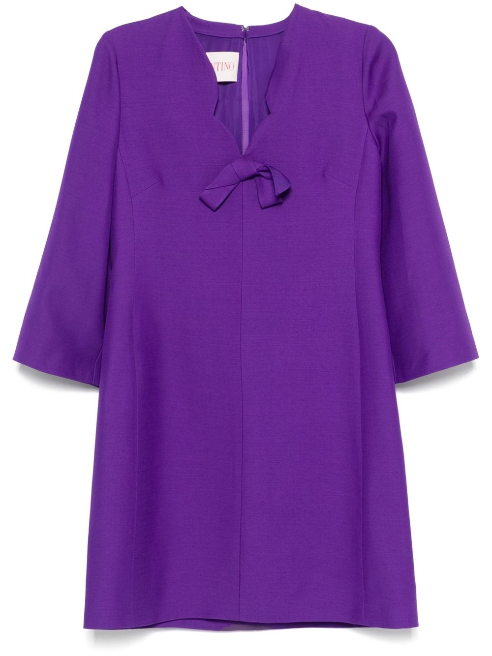 bow-detail mini dress Highlights - Valentino ready to wear - Plum purple - Concealed rear hook and zip fastening - V-neck - Full lining Made in Italy Composition Lining: Viscose 91%, Spandex/Elastane 9% Outer: Virgin Wool 65%, Silk 35% SIZE & FIT Model measurements Height 5 ft 9 in(1.75 m) Bust/Chest 33.85 in(86 cm) Hips 36.61 in(93 cm) Waist 25.98 in(66 cm) FittingInformation Designed for a slim fit that sits just away from the body offering a close yet comfortable fit Made from a midweight fabric