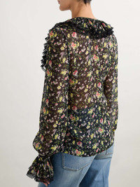 EDITORS'NOTES The timeless elegance of eras past inspires Valentino Garavani's Spring '25 collection. Made from silk-chiffon dappled with a floral print, this blouse has a floaty shape and a lace-trimmed, ruffled collar. Underpin yours with a tonal bralette to temper the sheerness. SIZE & FIT Model measurements: - Fits true to size, take your normal size - Designed for a relaxed fit - Lightweight, semi-sheer, non-stretchy fabric - Model is 175cm/ 5'9" and is wearing an IT 40 - Bust: 85cm/ 33.5" - Waist: 62cm/ 24.5" - Hip: 91cm/ 36" DETAILS & CARE - Multicolored silk-chiffon - Slips on - 100% silk