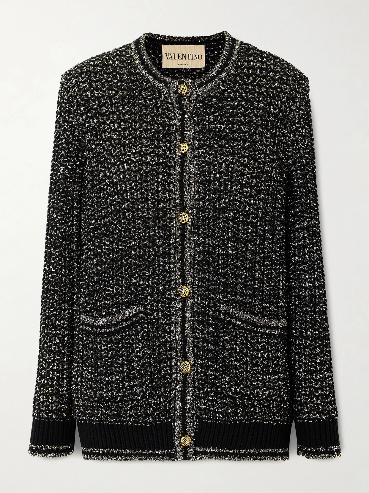 Valentino Garavani's cardigan is perfect for adding a little sparkle to your look. It's been made in Italy from cotton-blend that's flecked with glinting paillettes, and has embellished buttons. Wear yours with tailored pants when you have dinner plans.