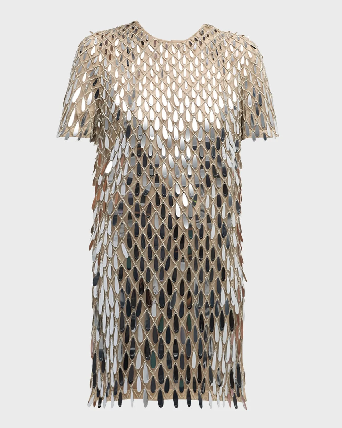 Sequined Crystal Short-Sleeve Mini Shift Dress
