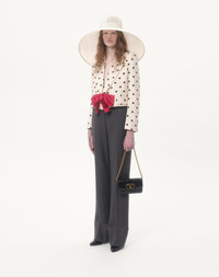 Shantung jacket with Pludepois print with Double Duchesse bow - Single breasted and button closure on bow - Side pockets - Shantung Plusdepois (100% Silk) - Flower lining and V Logo Stripes (100% Viscose) - Length: 50 cm / 19.6 in. from the shoulders in an Italian size 40 - The model is 176 cm / 5'9" tall and wears an Italian size 40 - Made in Italy The look of the model is completed by a Valentino Garavani Vain Bag and Valentino Garavani Foliefoliage Shoes. Product code: 6B0CE4669AF_R8E