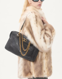 Lynx print shearling coat - Shoulder pads - Front closure with covered hooks - Lynx-effect Shearling (100% Lambskin) - Flower, Stripes and VLogo Lining (74% Acetate, 26% Silk) - Length: 75 cm / 29.5 in. from the center front in an Italian size 40 - The model is 176 cm / 5'9" tall and wears an Italian size 40 - Made in Italy The look of the model is completed by a Valentino Garavani Panthea Bag and Valentino Garavani Panthea Shoes. Product code: 7B0NB06H9QD_AM0
