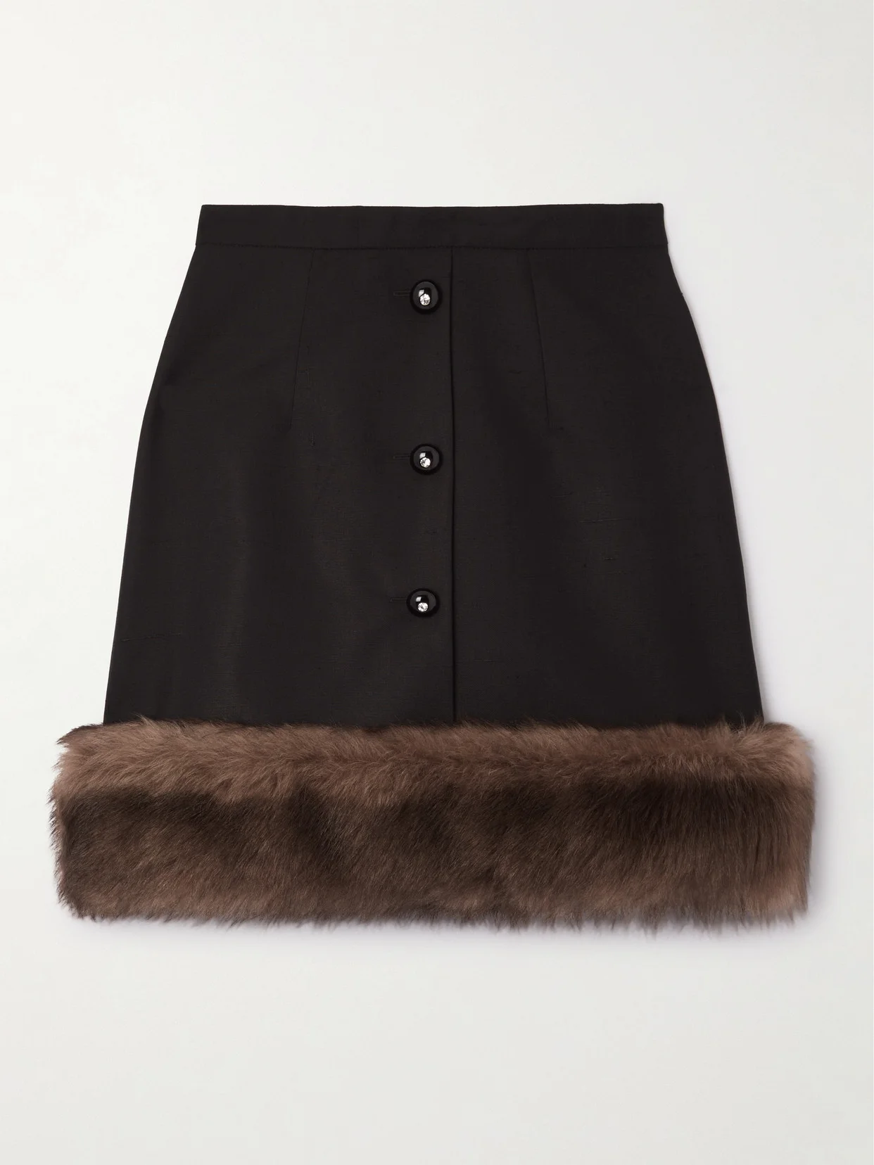 Valentino Garavani's skirt is made from lustrous silk with a subtle slub finish and has a fluffy shearling-trimmed mini hem. Just like the coordinating jacket, the covered buttons are dotted with shimmering crystals. Finish the look with tights and block heels.