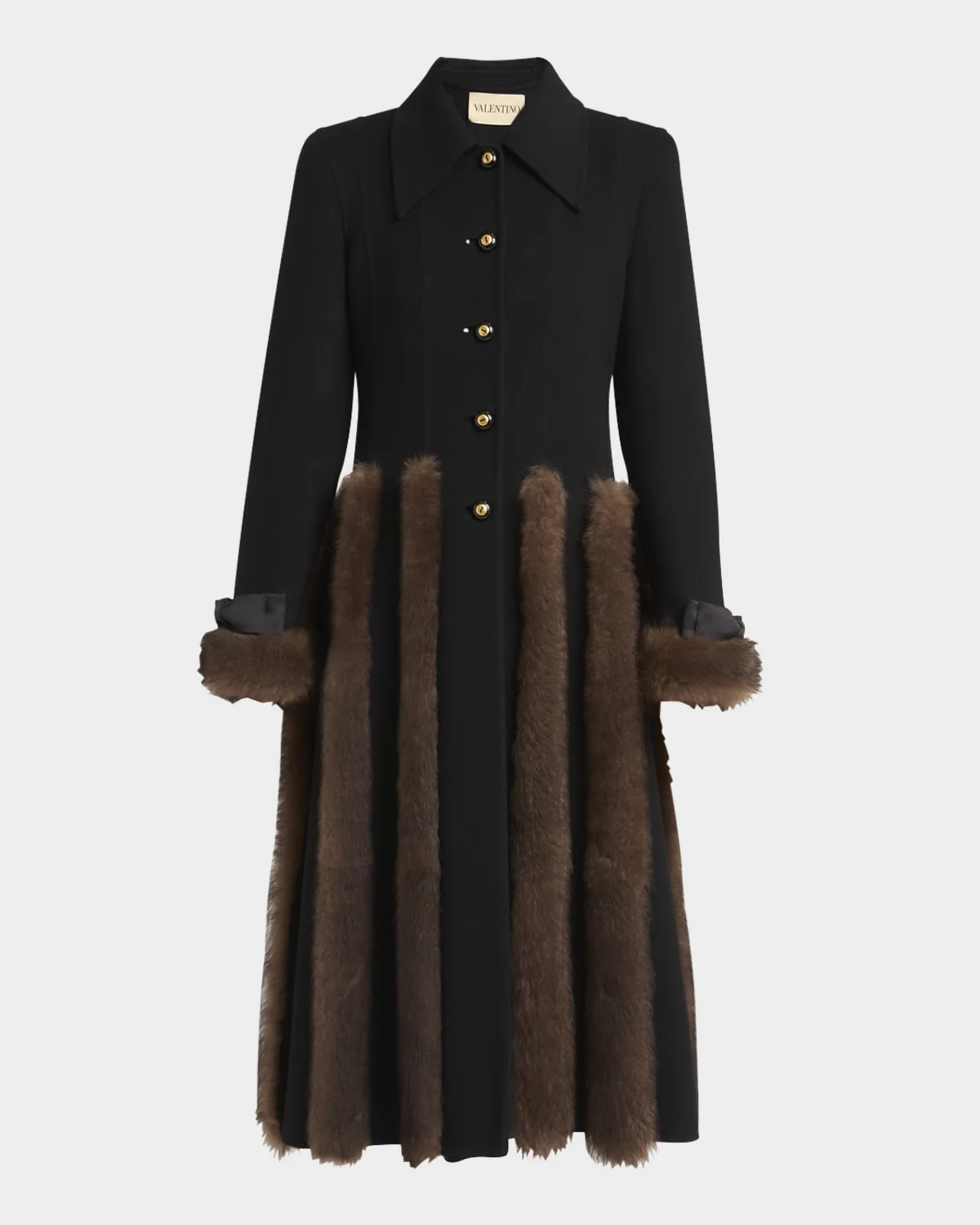 Sheep Shearling-Trim Cashmere Coat