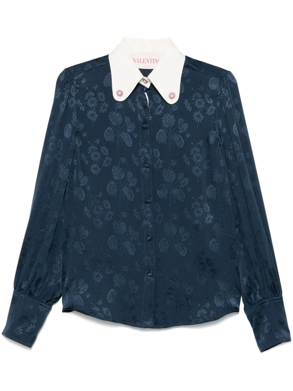 floral-jacquard shirt Highlights - Valentino ready to wear - Navy blue - Front button fastening - Spread collar - Long sleeves Made in Italy Composition Silk 100% Washing instructions Dry Clean Only