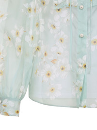 ruffled floral-print shirt Highlights - Valentino ready to wear - Pale blue - Floral print - Ruffled front panel - Long sleeves - Button fastening Made in Italy Composition Silk 100% Washing instructions Read Manufacturer Guidelines