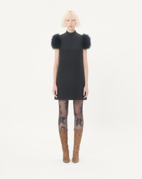 Crepe Couture short dress with feather boa - Rear zipper closure - Crepe Couture (65% Virgin Wool, 35% Silk) - Habotai lining (100% Silk) - Length: 90 cm / 35.4 in. from the shoulders in an Italian size 40 - The model is 176 cm / 5'9" tall and wears an Italian size 40 - Made in Italy Product code: 8B3VAJ901CF_0NO